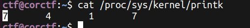 To read the debug print, we need either be able to read kernel logs (e.g. though dmesg, while the dmesg_restrict here is enabled), or our console log level need to be at least 5, and here we find we have log level as 7.